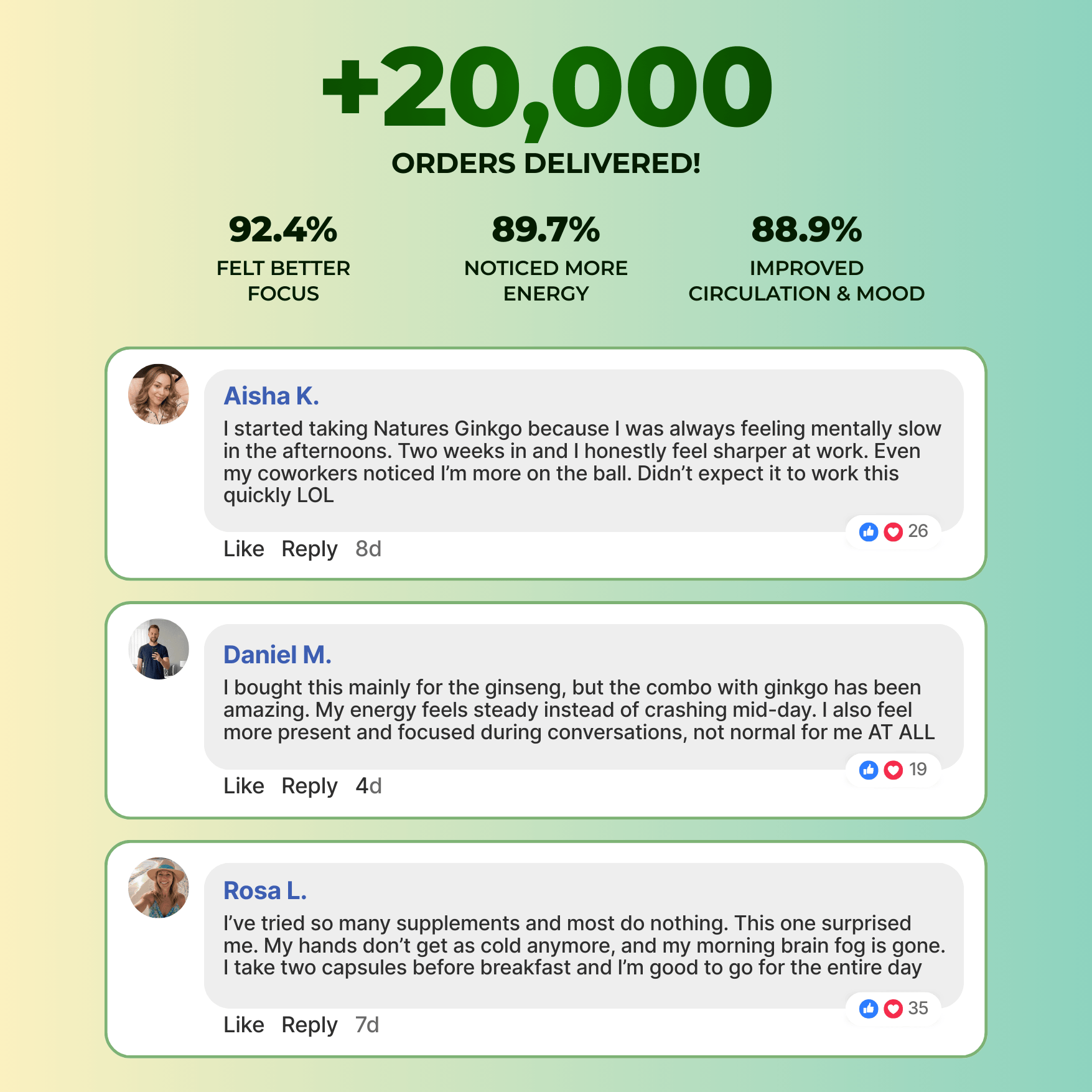 One of Ginkgo’s most well-known benefits is its ability to support blood flow. It naturally helps maintain healthy circulation by supporting normal blood vessel function. Improved circulation contributes to better nutrient delivery, physical performance, and everyday vitality.